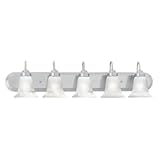SL7585-78Add timeless elegance with a contemporary twist to your bathroom space with this beautiful and sleek overhead fixture. The frosted glass has swirled details that provide a soft glow as you start or end your day. This piece from the Homestead collection will make a long-lasting impression. Features: -Five lights -Brushed nickel finish -Swirled alabaster style glass -Maximum wattage: 100w (bulbs not included) -Outer edge of glass to wall: 7.5" -Glass dimensions: 5.5" Diameter -Overall dimensions: 9" H x 36" W About Thomas Lighting Thomas's roots in the lighting industry date back to 1919, when Henrick Moe founded Moe Brothers Co. to manufacture residential lighting fixtures. This is the company that Lee B. Thomas acquired in 1948, changing the name to Thomas Industries in 1953. In 1998 the Genlyte Group Inc. and the Lighting Group of Thomas Industries Inc. joined forces to create a powerful new entity, positioned as one of the largest lighting manufacturers in North America. Building on their long and distinguished history in the lighting industry, Thomas Lighting is committed to residential lighting needs.
