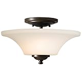 (More customer reviews)Nice looking, more modern take on traditional semi-flush mounted lights. Extremely easy to install, since the base is small and light, so easy to hold with a couple of fingers while still using that hand to link wires. Provides plenty of light for our 11 x 12 bedroom, since the light reflects off the ceiling above the glass. If you are directly under the light, you don't see the bronze base where it attaches to the ceiling, and the white frosted glass sort of merges into a white ceiling. Would like to see it retain its edge more so it doesn't "disappear" into the ceiling, but overall looks very nice.